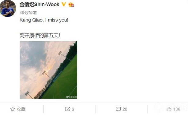 365体育投注:北京时间9月30日晚,申花外援金信煜在微博晒出一张夕阳下的康桥训练基地照片,间歇期暂别康桥的他还配文表达了想念这里的心情。